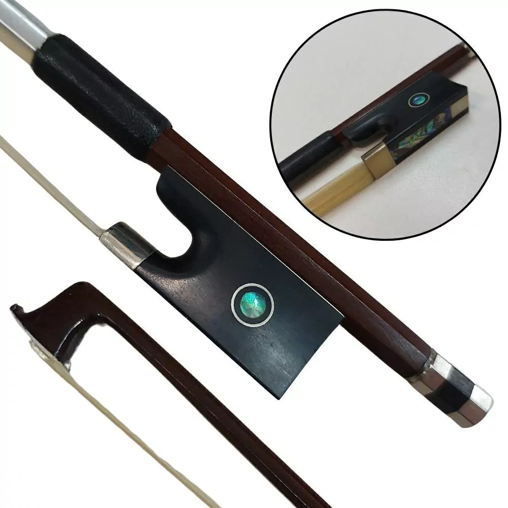 Esta permite uma excelente envergadura do arco e tem o peso ideal para uma execução do som impecável. No modelo Oitavado permite uma melhor pegada. O talão é em Ébano, proteção níquel/prata, crina animal com qualidade exuberante e um ótimo aspecto de estética, o arco desliza com suavidade sobre as cordas. Logo o músico não faz força nas arcadas.