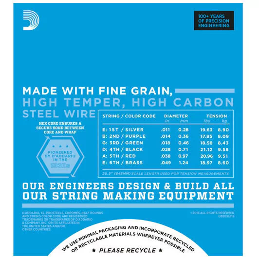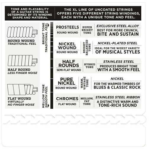 As EXL115 são a escolha mais popular para guitarristas que preferem uma flexibilidade moderada e um timbre cheio.