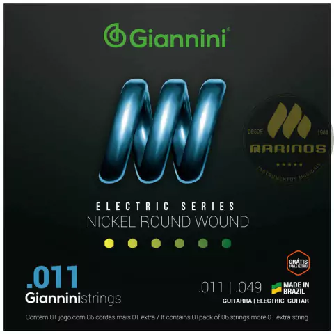 A série Electric traz toda a sonoridade dos encordoamentos Giannini para a sua guitarra e contra-baixo. O encordoamento para guitarra Giannini GEEGST11 é composto de um núcleo de aço revestido por Níquel. O Níquel produz um som brilhante e agressivo que atende uma grande variedades de estilos musicais, sendo bem resistente a oxidação e corrosão.