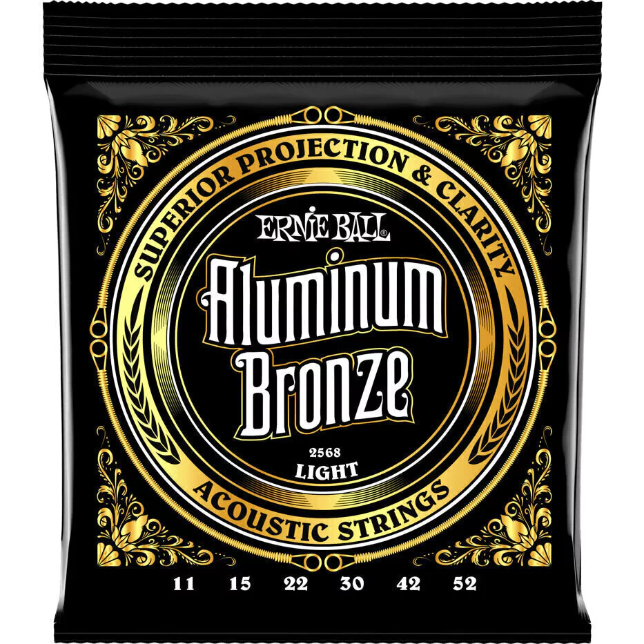 As cordas Aluminum Bronze apresentam maior projeção e clareza do que as cordas de bronze tradicionais, enquanto também fornecem aprimorada resistência à corrosão. Cordas Aluminum Bronze são feitas com fios hexagonais de aço Maraging Ernie Ball no núcleo, envoltos em fios de alumínio bronze que fornecem baixos mais pronunciados juntamente com agudos brilhantes e nítidos. Feita a partir de uma mistura de cobre e alumínio especificamente adaptado para cordas de violão