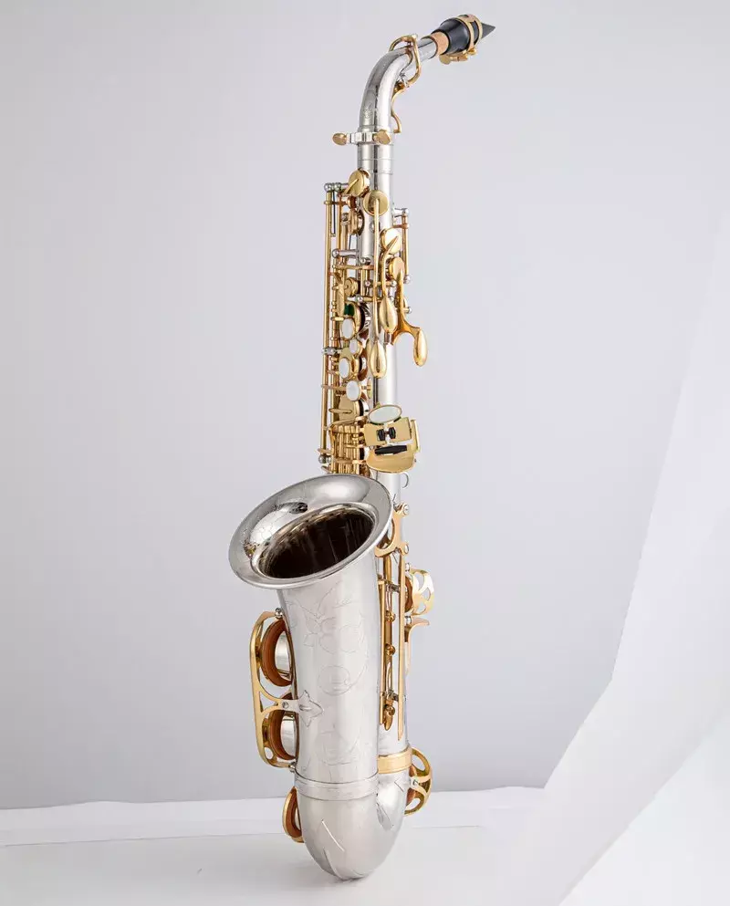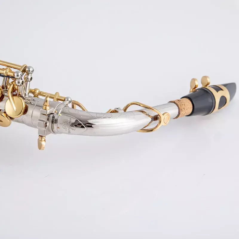 - Corpo, sino, curvatura (bow) e gargalo em prata ou níquelado (verificar versão exata) conforme linha elite WO da Yanagisawa, o que proporciona ressonância superior.