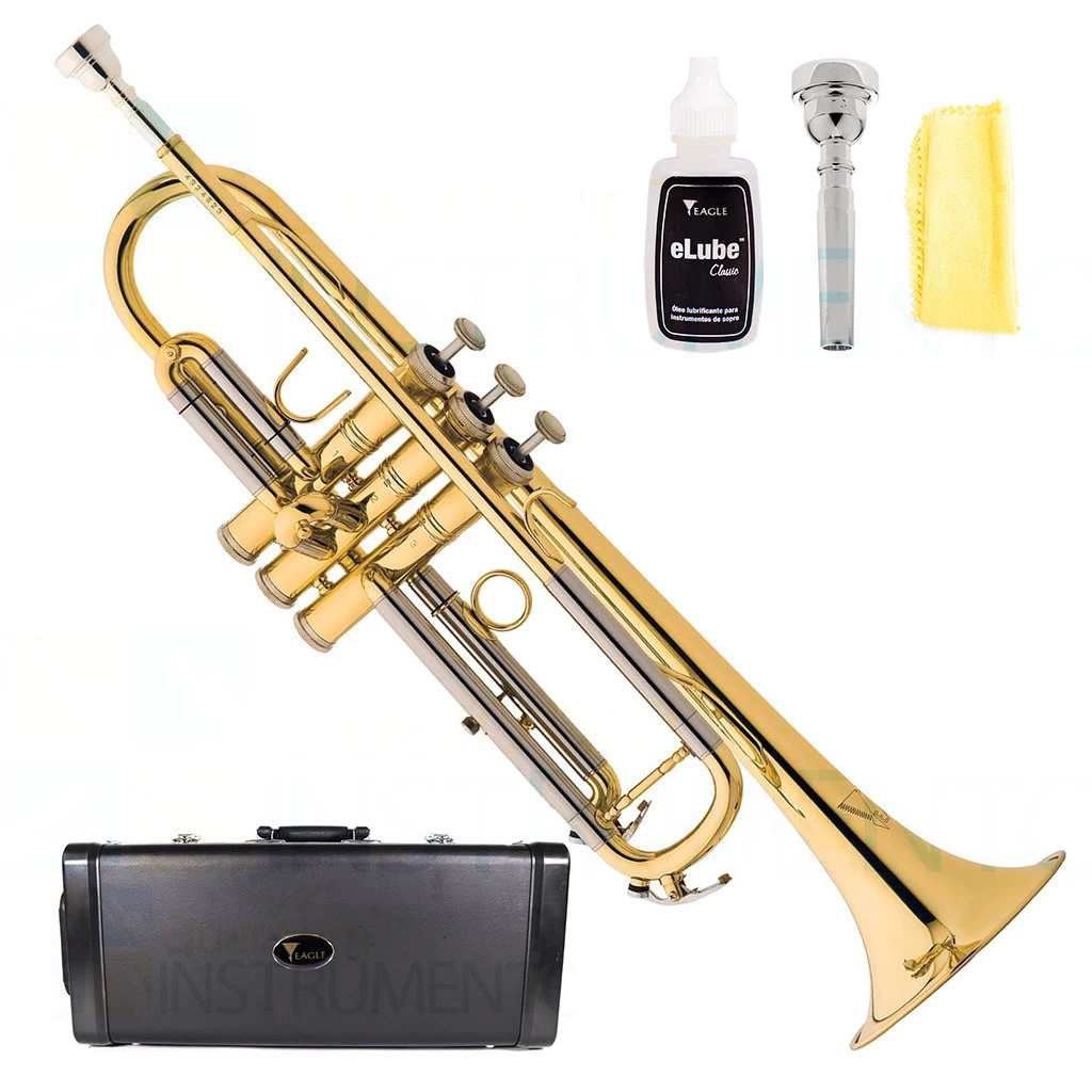 O Trompete TR 504 da Eagle, é um trompete que se destaca pela qualidade de sua construção e pelos materiais que o compõe. Ajustadas manualmente, as chaves ergonômicas oferecem maior conforto, respostas rápidas e afinação precisa. Seu acabamento laqueado e niquelado, encaixes em alpaca e válvulas em aço inoxidável conferem ao instrumento um belíssimo visual e uma excepcional sonoridade.