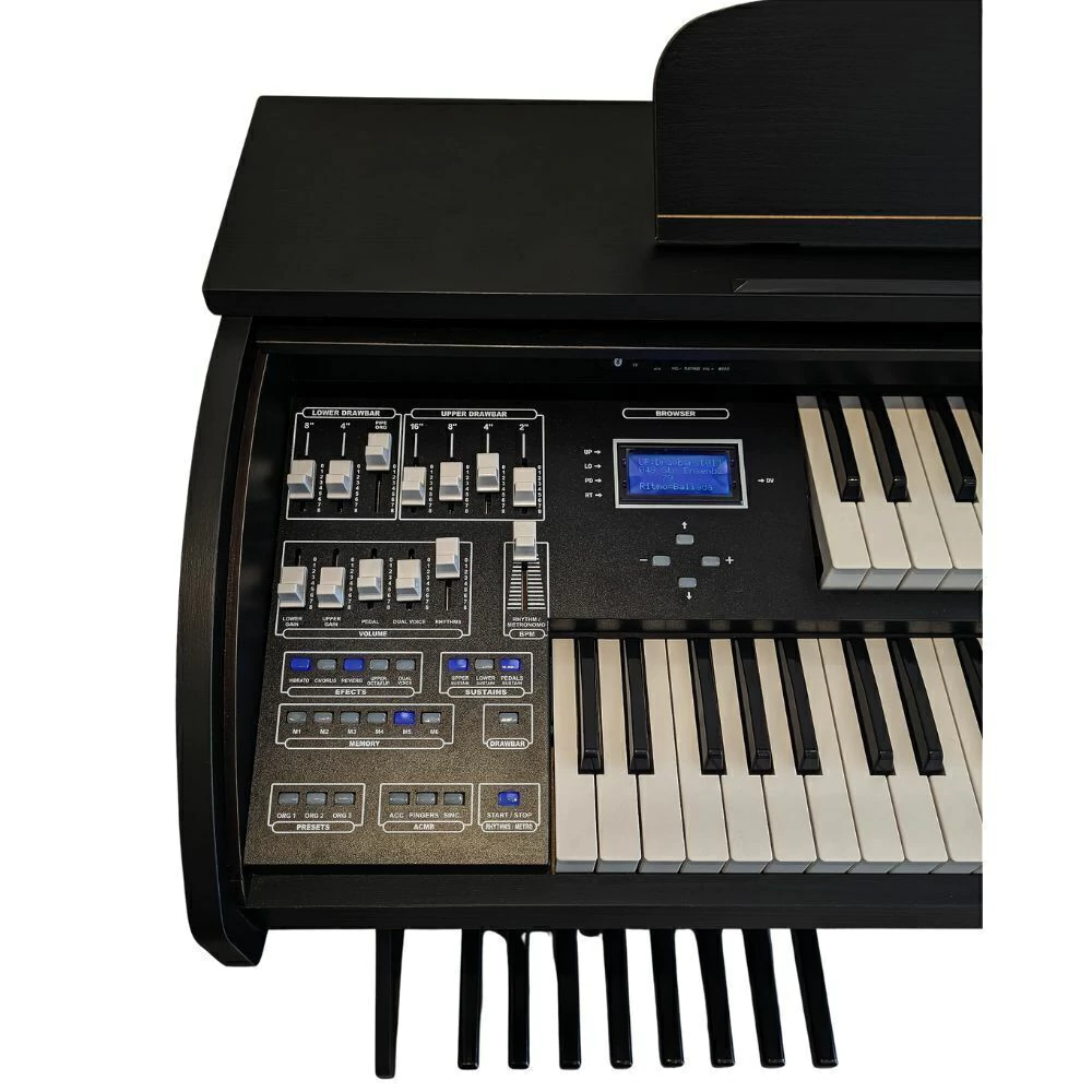 – Timbres com Drawbars e 128 sons GM em ambos os teclados