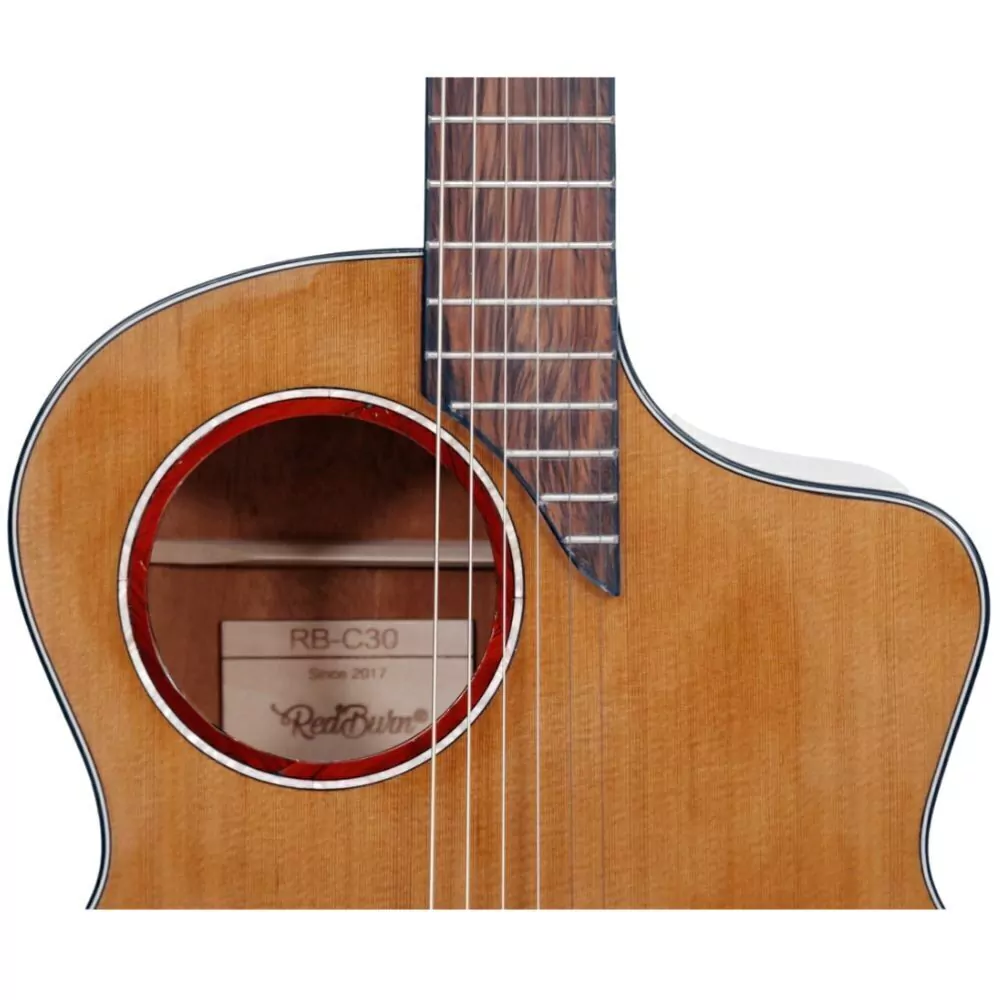 Experimente a excelência e a inovação com o Violão Redburn RB-C30, um instrumento feito para músicos que desejam som de alta qualidade aliado a um design único. O violão é confeccionado com um tampo de Cedro maciço e laterais laminadas, oferecendo uma sonoridade rica e encorpada, ideal para diversos estilos musicais. O destaque fica por conta do seu Offset Sound Hole, um design inovador que proporciona uma melhor projeção sonora e um visual moderno e atraente.