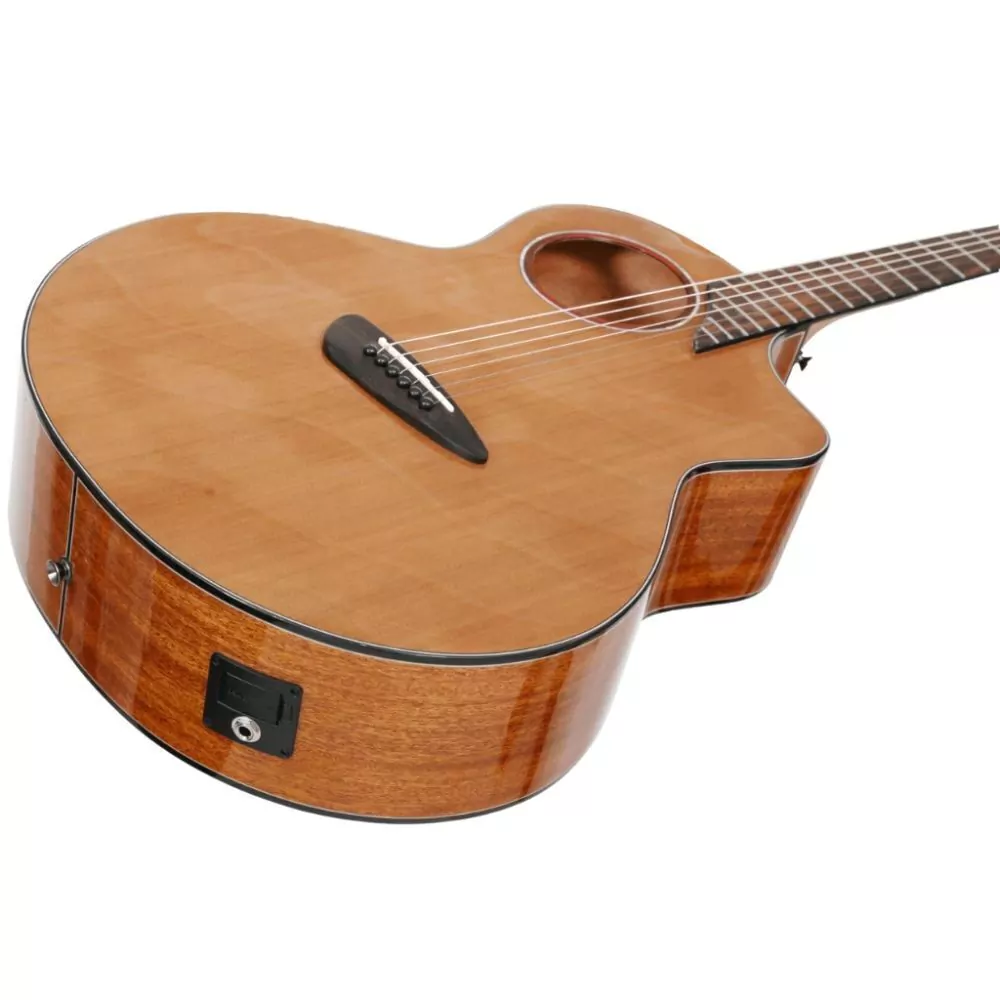 - Design: Offset Sound Hole, um buraco de som deslocado que melhora a projeção sonora e cria um visual diferenciado.